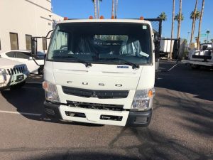 2017 FUSO FE180 WITH 18’UTB, STAKE SIDE FLATBED, BLUETOOTH, RADIO,CONVEX MIRRORS, FLOOR MATS, 18’UTB FLATBED W/TUCKAWAY LIFT, GATE, 5 YEAR/175,000 MILES, EXTENDED SERVICE PLAN